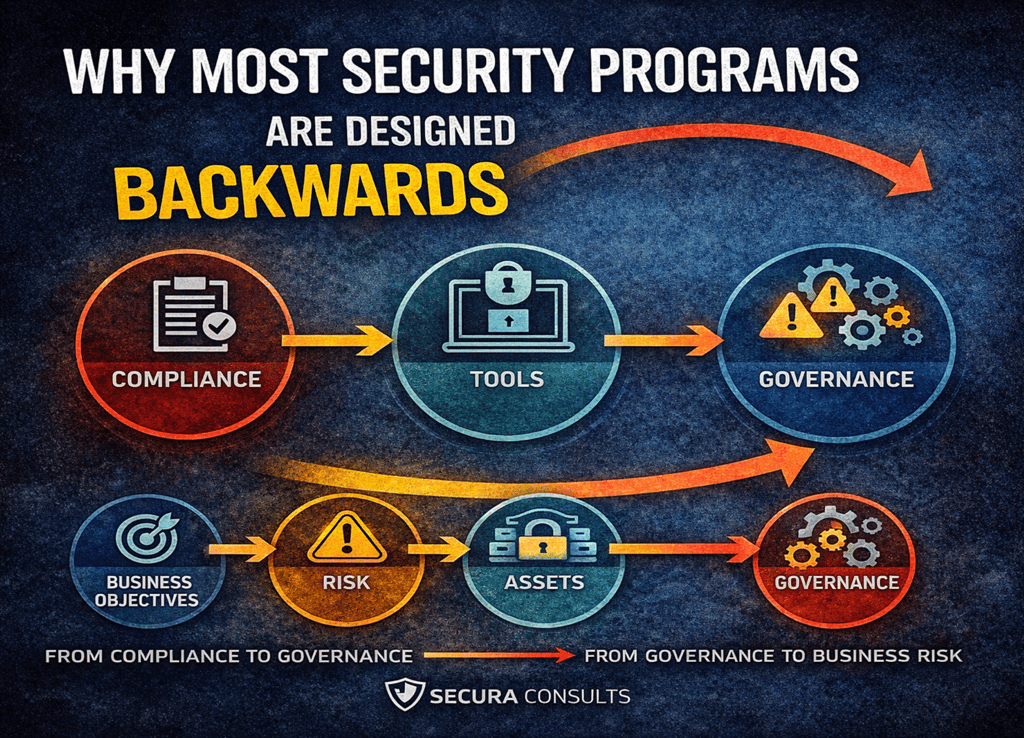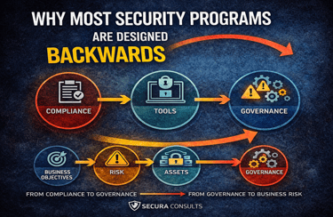 Most security programs are not ineffective because they lack effort. They are ineffective because they lack order. Designing security backwards — beginning with tools or certifications — may produce documentation and dashboards. It does not necessarily produce resilience.